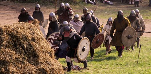 Bitva Libušín (21.04.2018) je za námi. Naší družinu jste mohli vidět tradičně v raně středověkém šiku na bitevním poli pod naší bojovou zástavou.